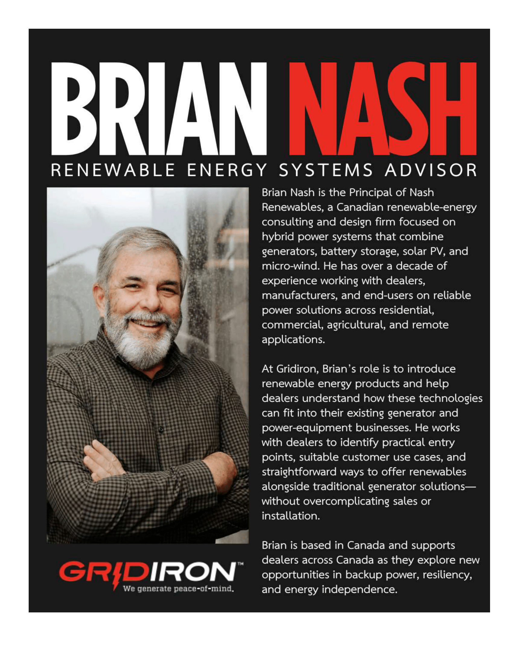 Nash Renewables has designed over 1500 battery based and grid tied power systems for residential and commercial applications. Our staff developed Canada's first off grid demonstration center and are recipients of several Ontario Chamber of Commerce, Intersolar and Canadian Government Awards for Innovation. Brian Nash (founder) has been a member of the North American Board of Energy Practitioners since 2014.